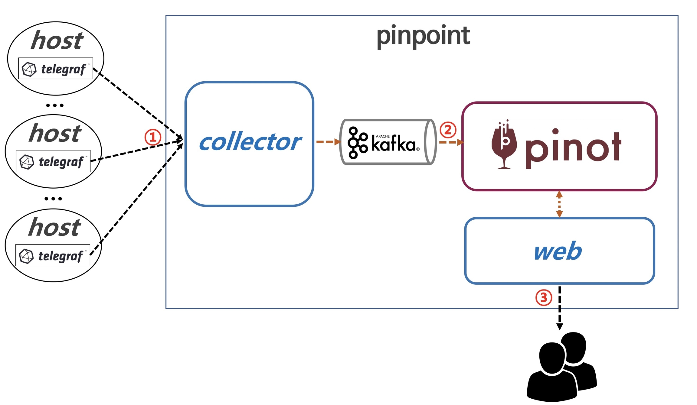 1. Telegraf agent sends system metrics data to Pinpoint collector.